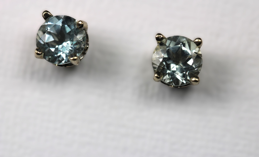 2-6mm 1.50cttw round Aquamarine from Namibia set in 14kw scroll posts.